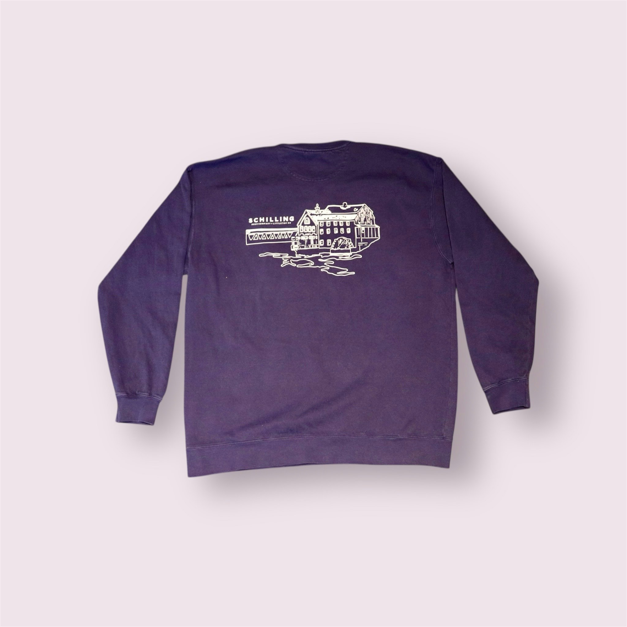 80% Cotton 20& Polyester. Riverside Design on back, Schilling Beer Co. Logo on front.
